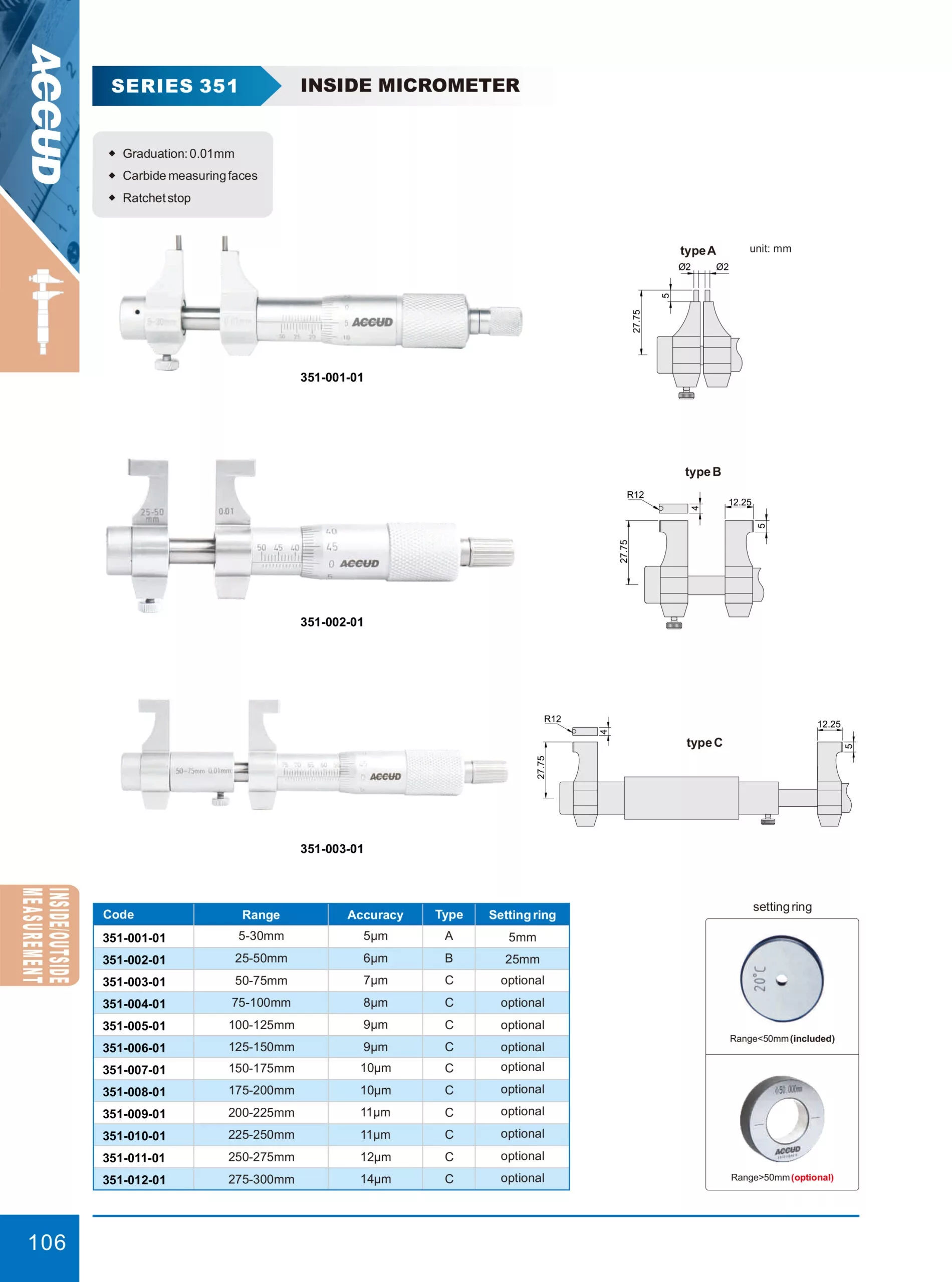 0-25mm ,100-125mm ,125-150mm ,150-175mm ,175-200mm ,200-225mm ,225-250mm ,25-50mm ,250-275mm ,275-300mm ,50-75mm ,75-100mm ,set 3 pcs – 0-75mm ,set 4 pcs – 0-100mm ,set 6 pcs – 0-150mm |