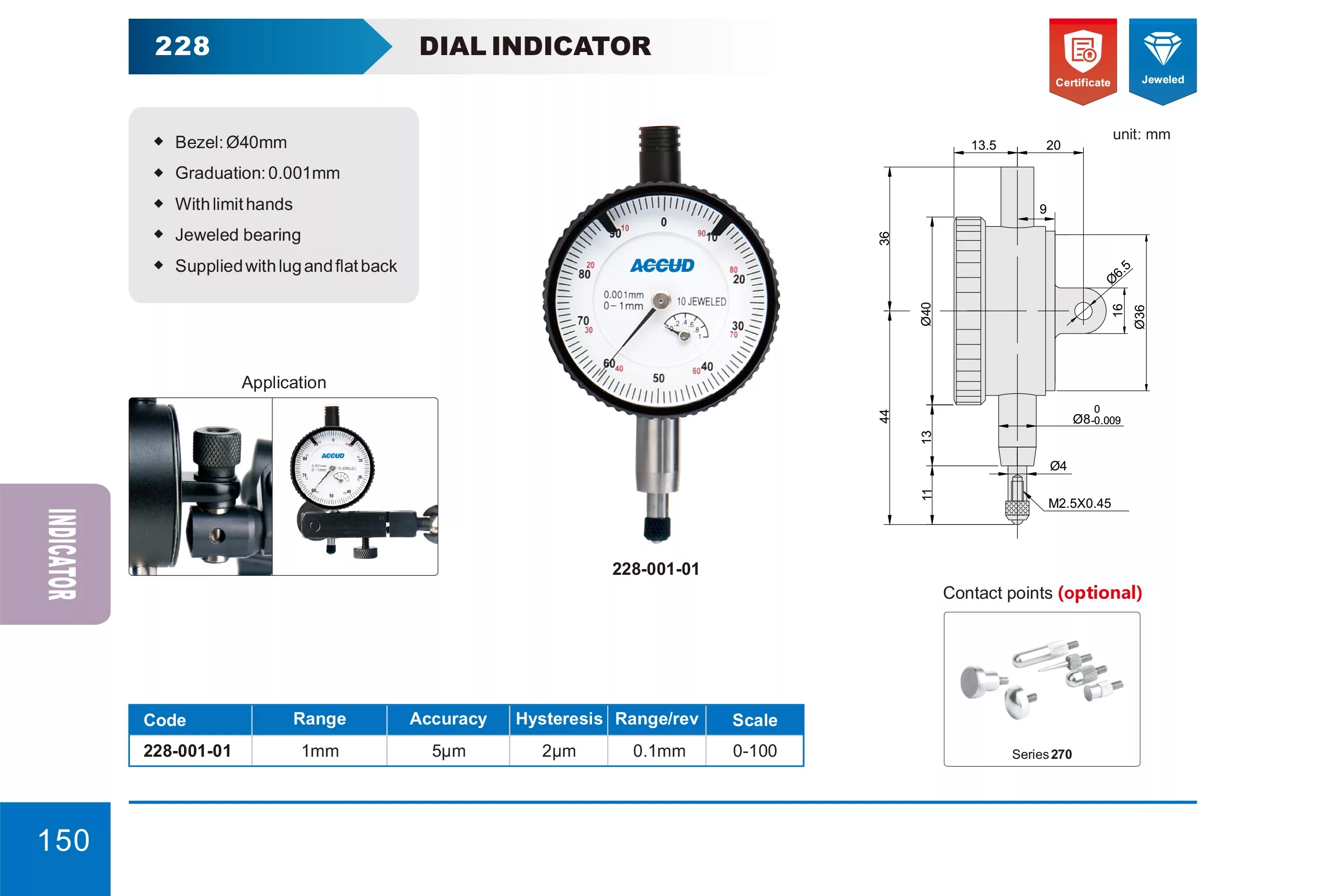 Commandez dès maintenant et faites l’expérience de la précision sans compromis avec notre Comparateur à aiguille à lunette Ø40mm de haute qualité.
