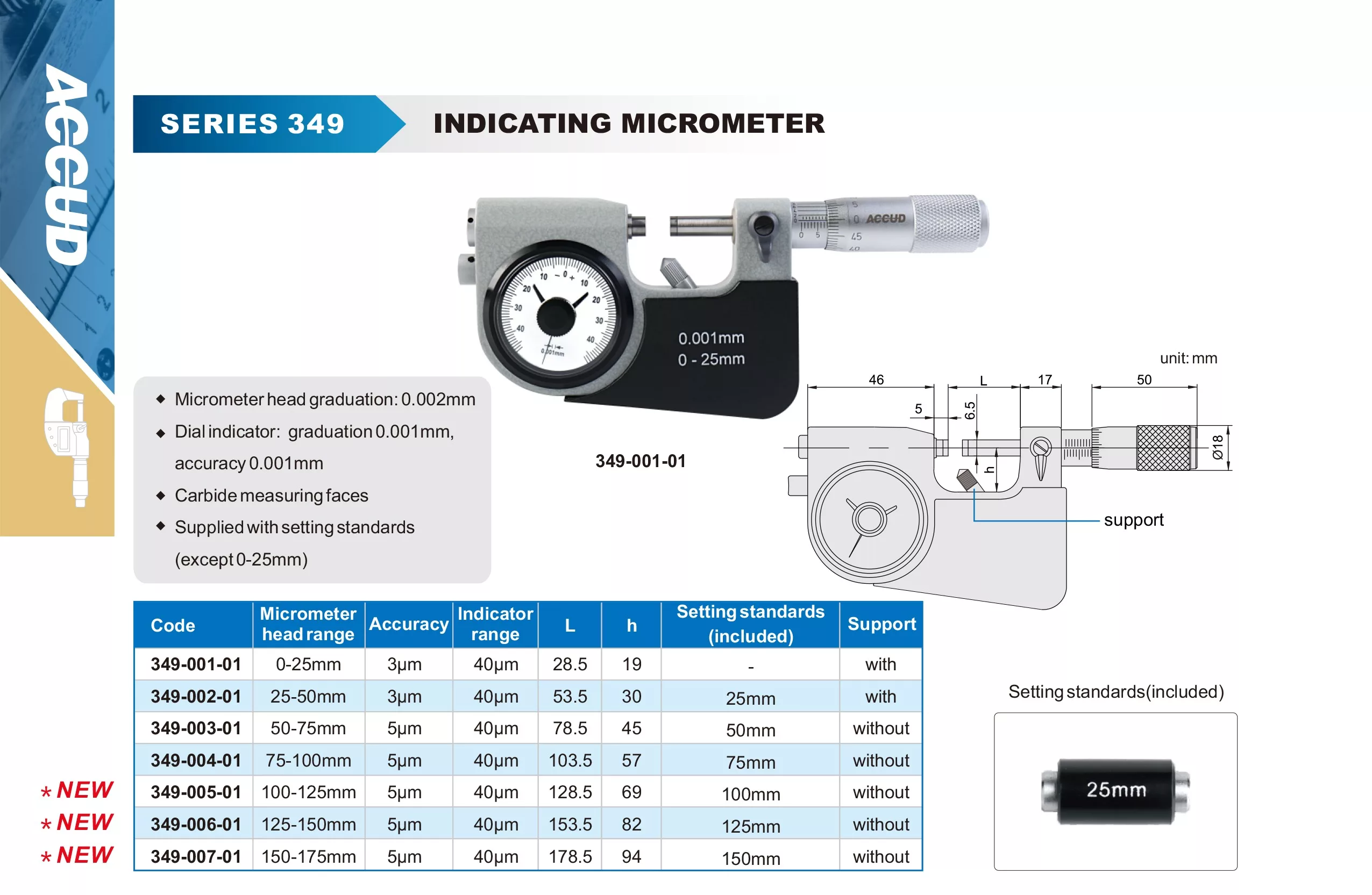 ■ Livré avec étalons de réglage (sauf 0-25mm)