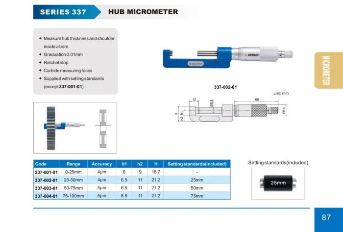 ■ Livré avec étalons de réglage (sauf 337-001-01)