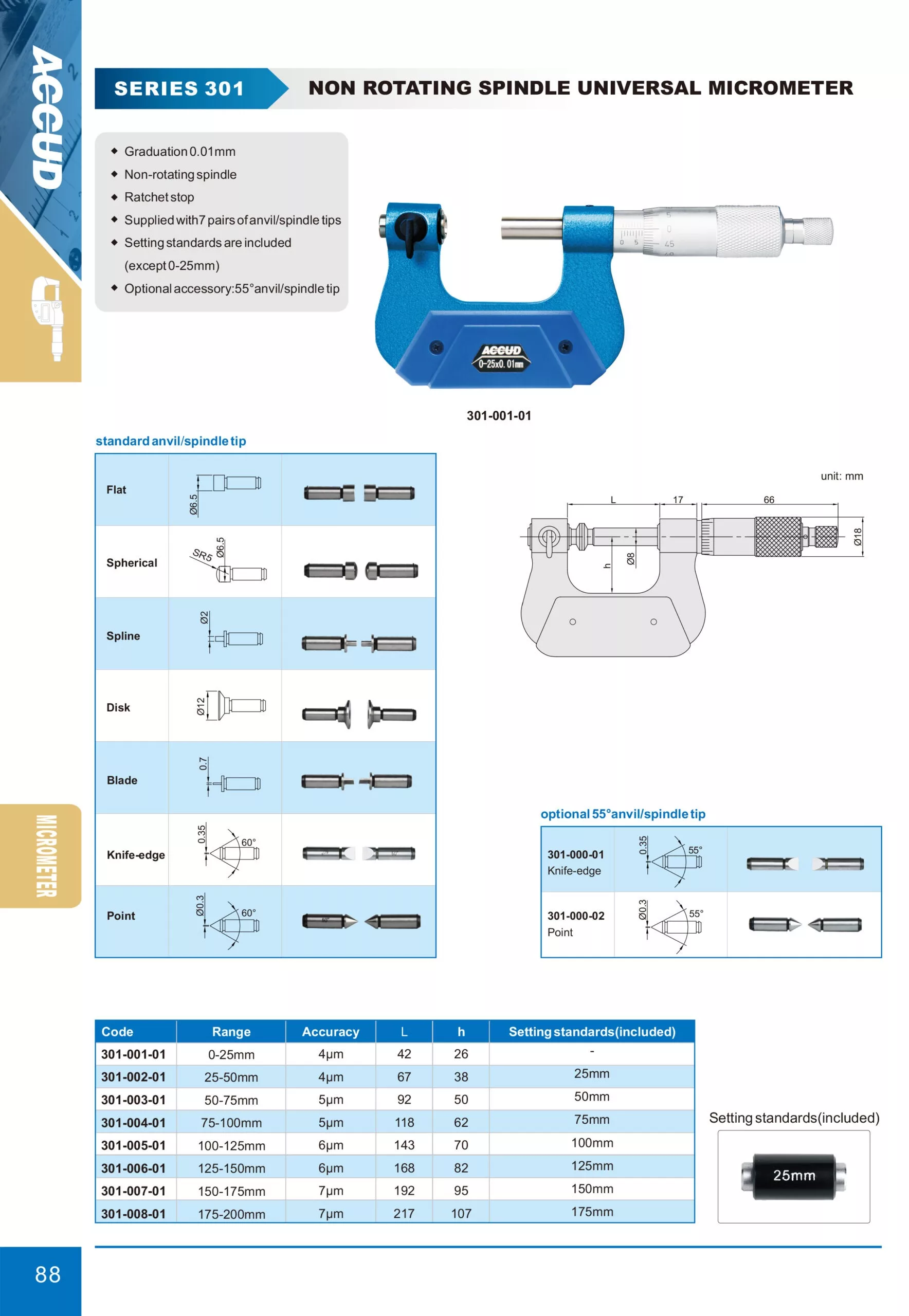 ■ Les normes de réglage sont incluses (sauf 0-25 mm)