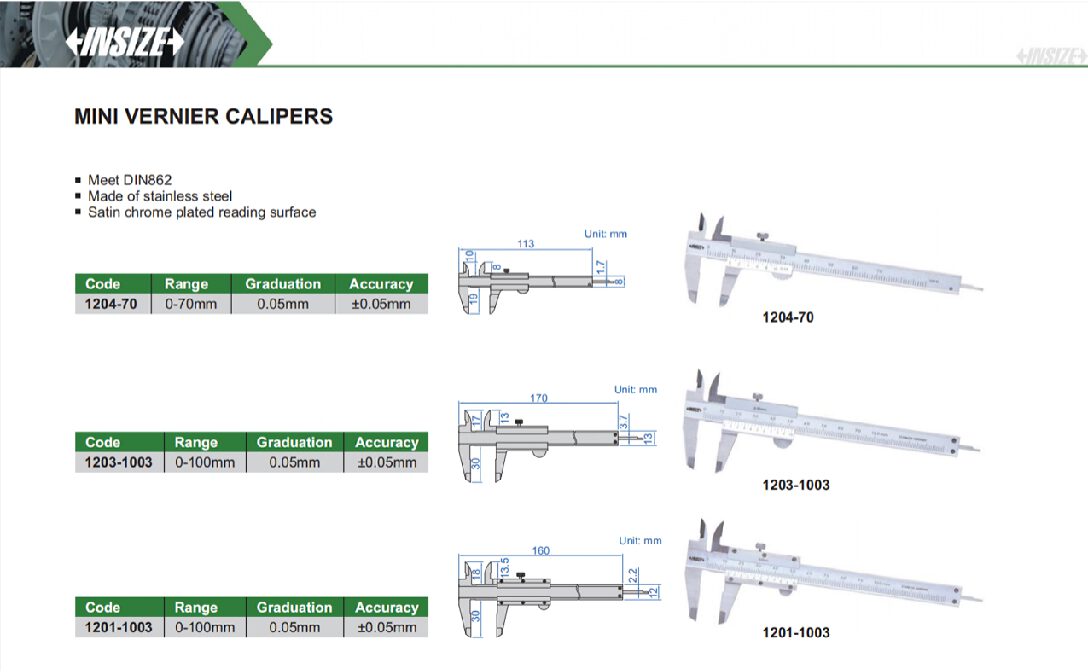 Pied à coulisse à vernier à becs d’extérieur TESA – ajustement fin – avec ou sans double résolution
