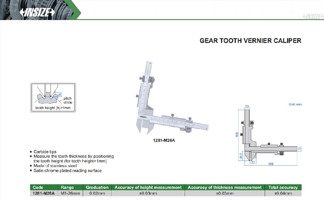 Pied à coulisse à vernier pour mesure d’engrenage INSIZE