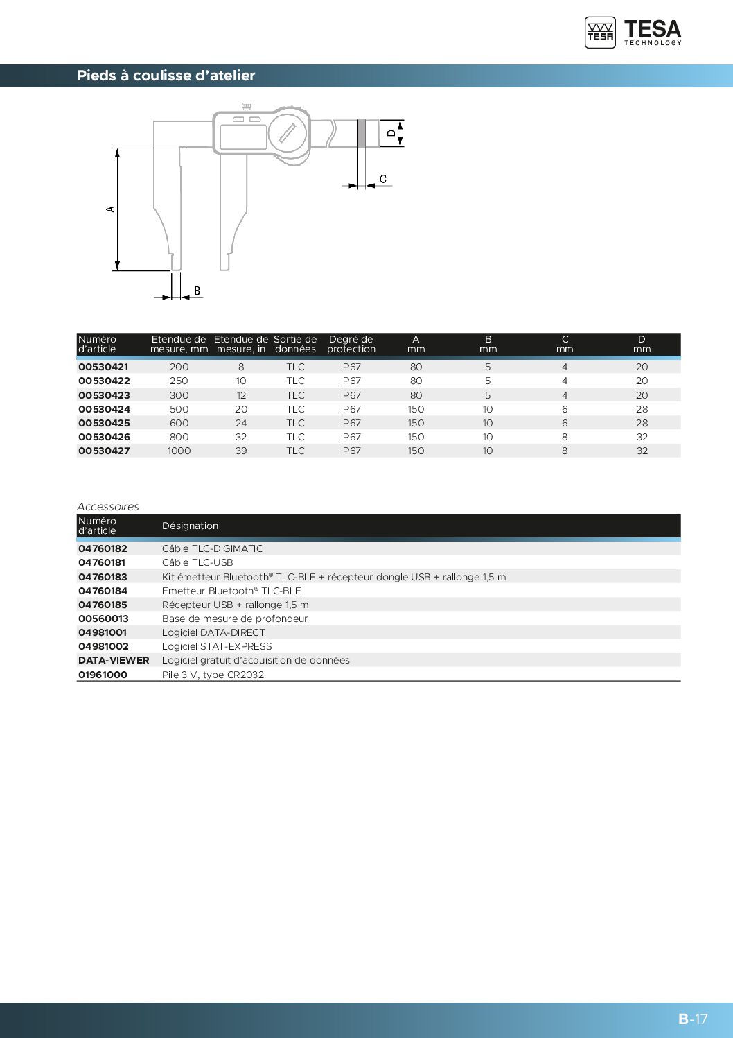 KIT avec émetteur TLC-BLE + Pied à coulisse digital TESA avec ou sans molette et envoi de données.