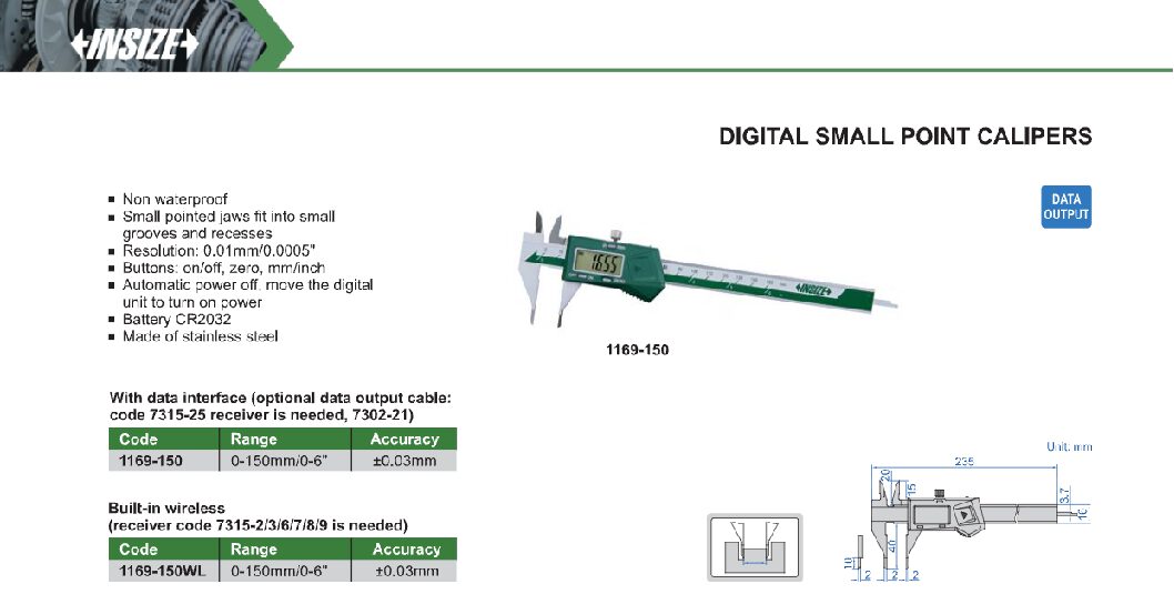 Pied à coulisse numérique à becs à pointe fine INSIZE
