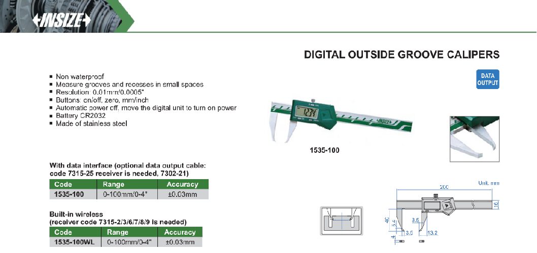 Pied à coulisse numérique à becs fin pour mesurer les rainures extérieur INSIZE