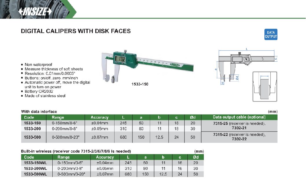 Pied à coulisse numérique à face à disque de mesure large INSIZE