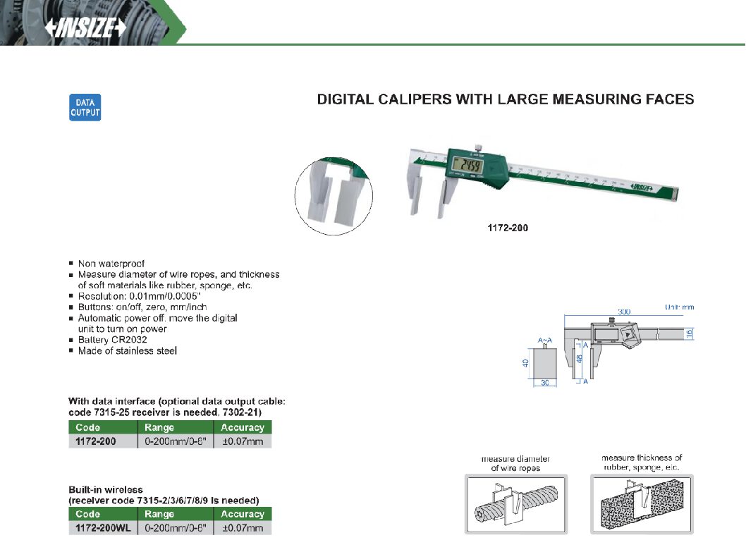 Mesure le diamètre des câbles métalliques et l’épaisseur des matériaux souples tels que le caoutchouc, l’éponge, etc.