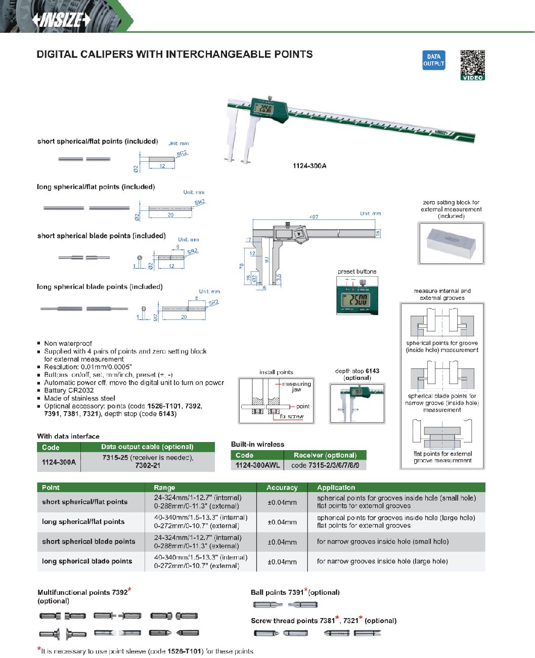 Pied à coulisse numérique à pointe interchangeable 1124 INSIZE