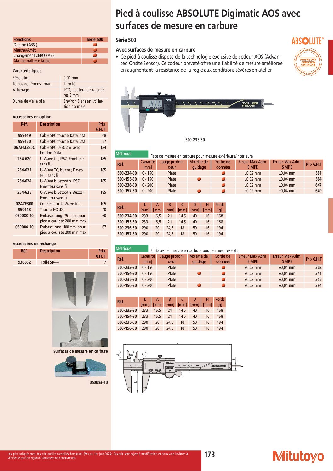Pied à coulisse numérique ABSOLUTE Digimatic AOS – MITUTOYO Série 500