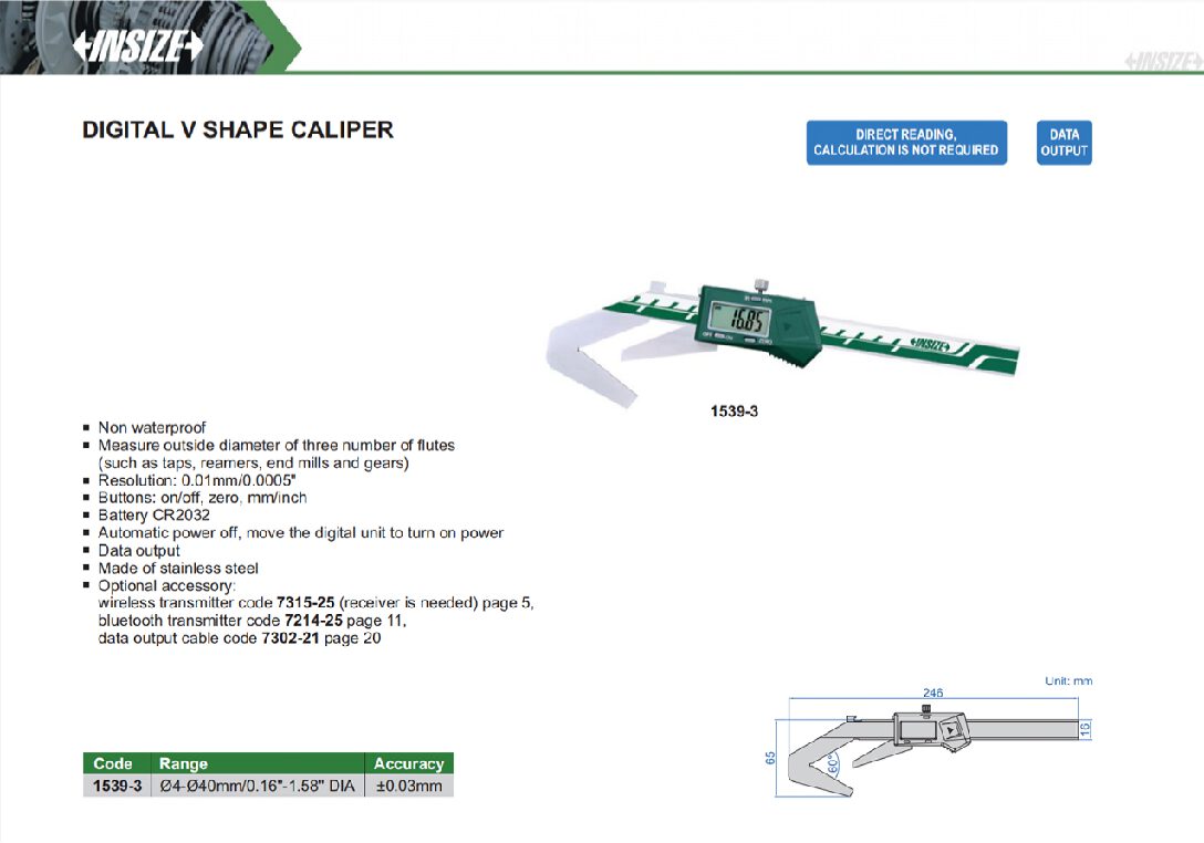 Mesure le diamètre extérieur de trois types d’outils (tels que les tarauds, les alésoirs, les fraises et les engrenages).