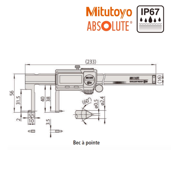 Pied à coulisse numérique d’atelier IP67 ABSOLUTE Digimatic MITUTOYO Série 550