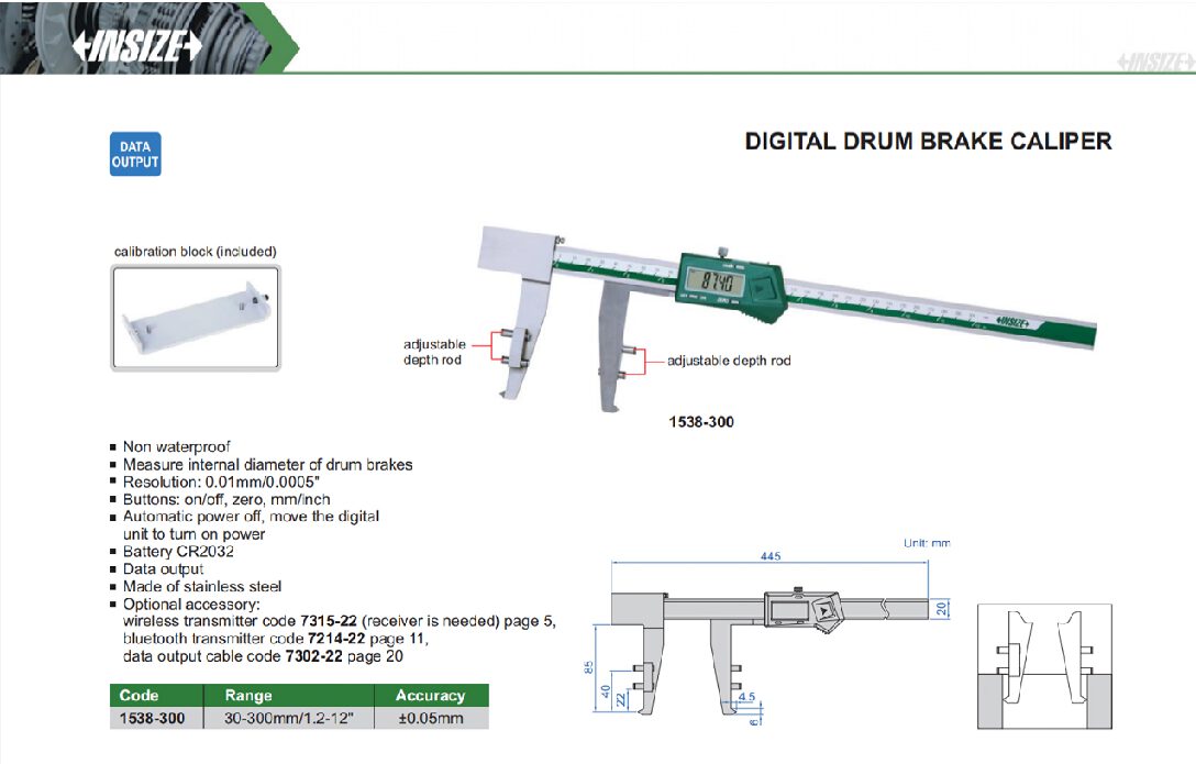 Pied à coulisse numérique pour mesure de frein à tambour avec butée INSIZE