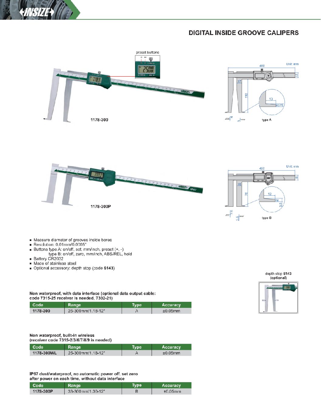 Pied à coulisse numérique pour rainure intérieure à touche plate INSIZE
