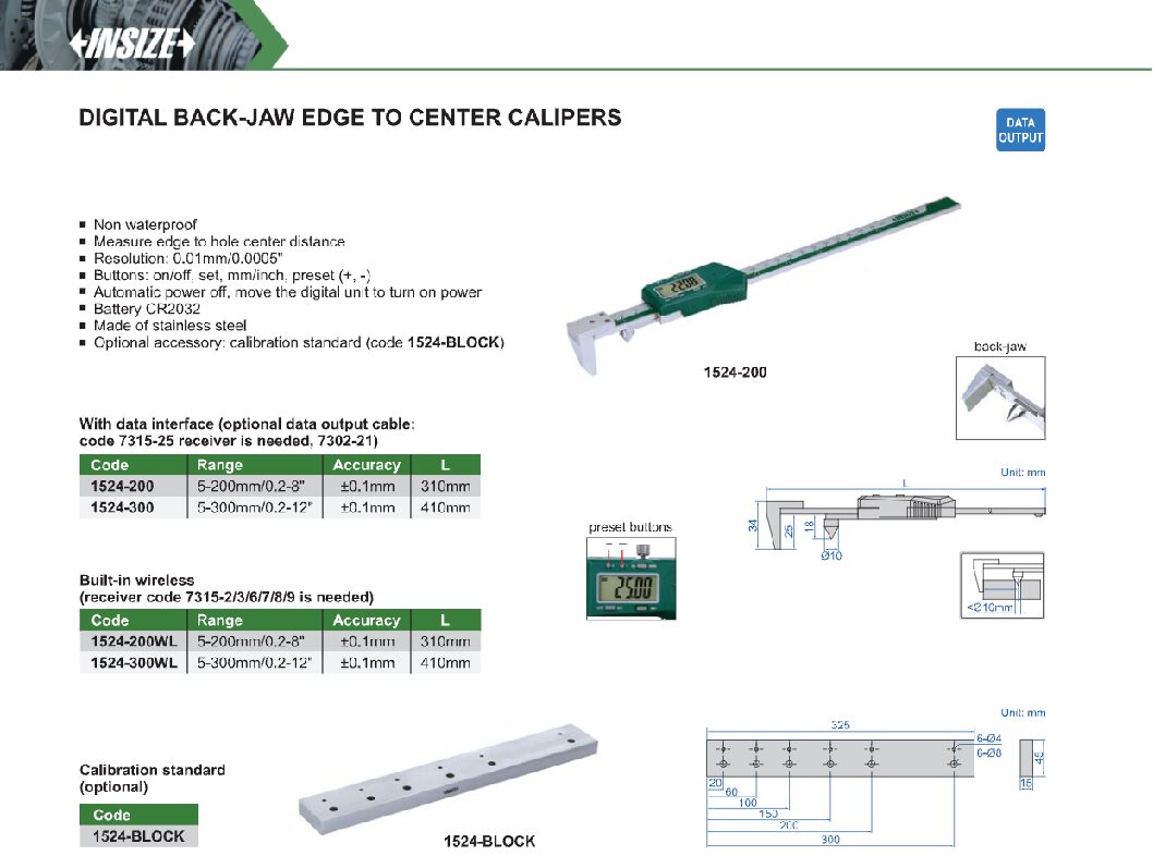 Pied à coulisse numérique simple pour mesure de centre (Touche conique) à mâchoire arrière INSIZE