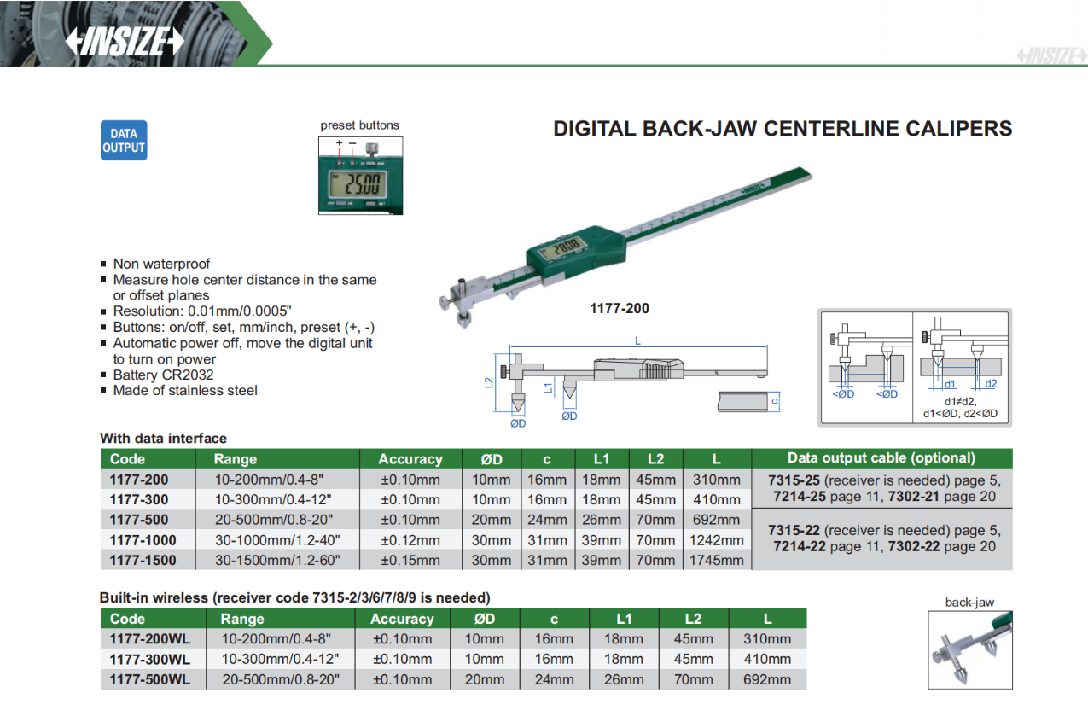 Pied à coulisse numérique simple pour mesure d’entraxe (Touche conique) à mâchoire arrière INSIZE
