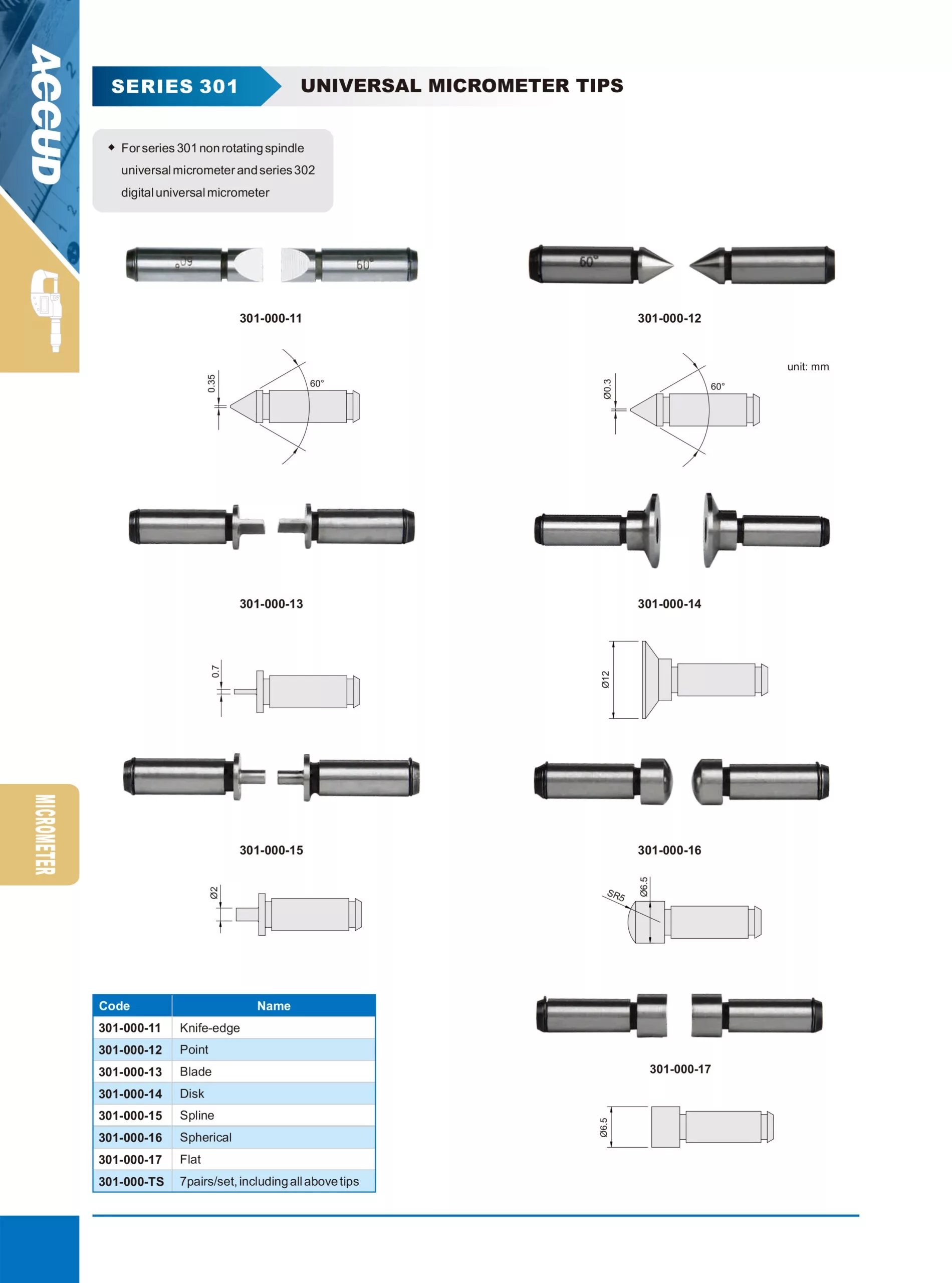 ■ Pour micromètre universel à broche fixe série 301 et micromètre universel numérique série 302